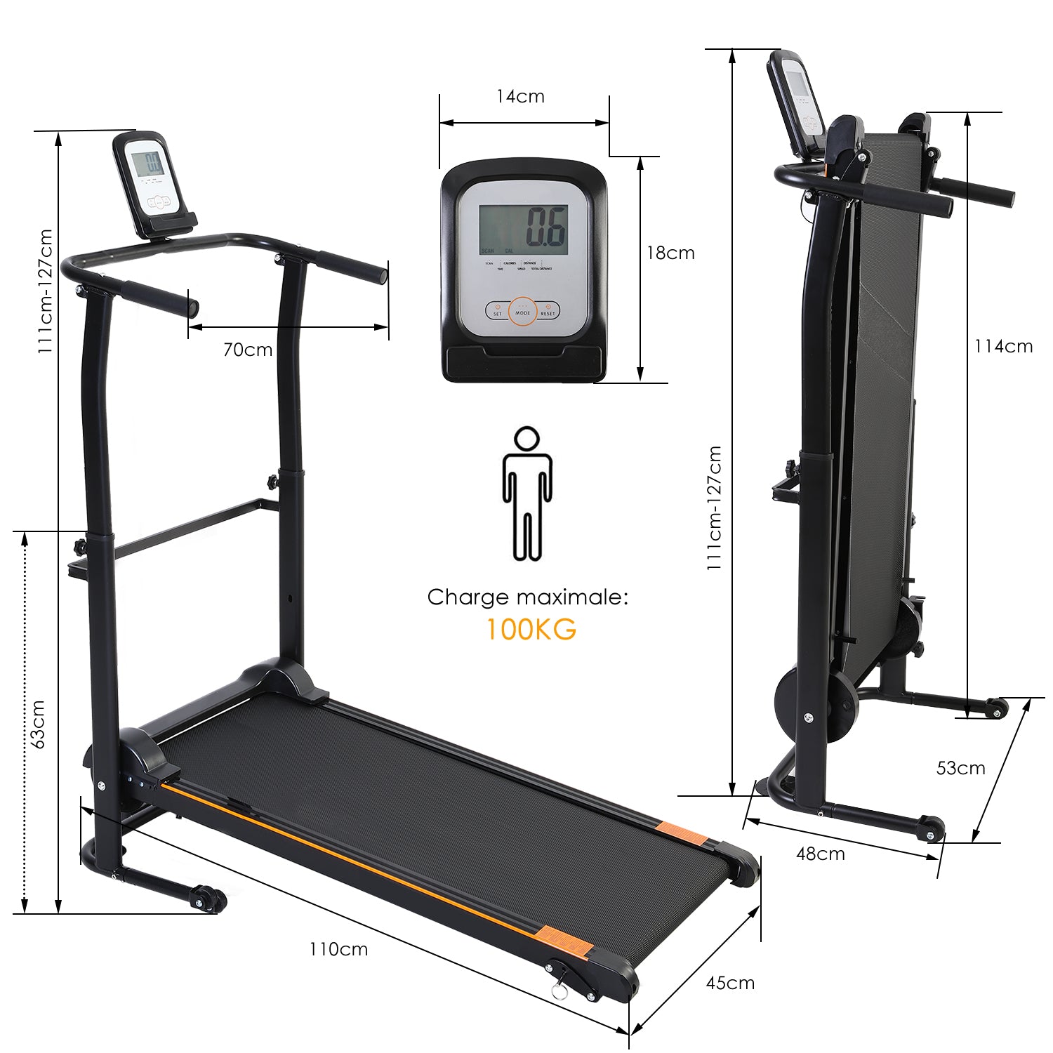 Conçu pour une utilisation douce et progressive, il offre une surface de marche de 110 x 45 cm, parfaite pour des séances de marche régulières, que ce soit pour entretenir votre forme, favoriser la circulation ou simplement bouger après une journée de travail.